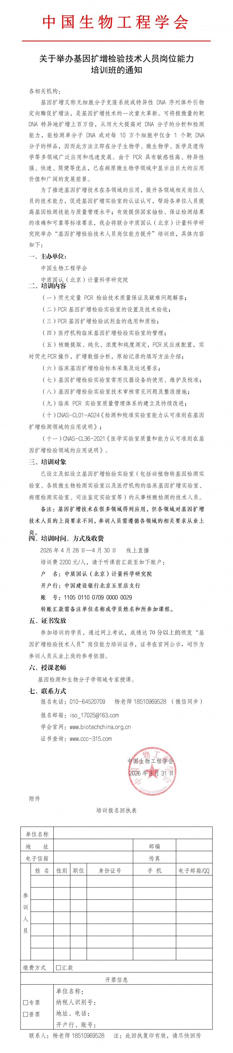 为深入践行 818 号文件精神,精准解读政策核心要义,破解技术转化中的合规难题与实践堵点,搭建 “政产学研医用” 多方协同的高端交流平台,中国生物工程学会联合汉氏联合集团等单位,特举办 “落实 818 号文件・赋能生物医学新技术临床转化大会”。本次大会以 “合规引领・创新转化 ——818 号文件下细胞治疗等生物医学新技术的发展路径与实践探索” 为主题,汇聚政策制定者、学术权威、临床专家与产业领军者,通过政策深度解读、前沿成果分享、实操标准研讨等多元化议程,系统梳理临床研究备案流程、风险管控要点与转化应用准则,分享高质量发展的实践经验与创新案例。 我们坚信,本次大会的举办,将助力行业各界准确把握 818 号文件的立法精神与实践要求,推动医疗机构、科研院所与企业构建长效协同创新机制,实现创新技术与临床需求的精准对接,加速科研成果从实验室走向临床一线。诚邀各界同仁齐聚江西上饶,共话政策机遇、共探发展路径、共筑产业生态,以合规为基、以创新为翼,携手推动我国生物医学新技术临床转化事业行稳致远,为健康中国建设注入更为强劲的科技动能!上岗、备案、求职刚需!PCR、NGS、生物安全、生信分析师、细胞制备师、实验室质量管理全覆盖!助力持证上岗!